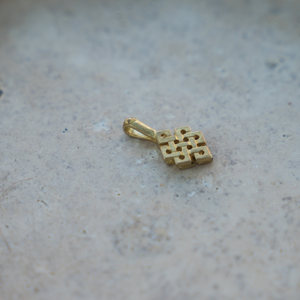 Infinity knot bum counter, one of the 8 auspicious symbols. Made of brass metal